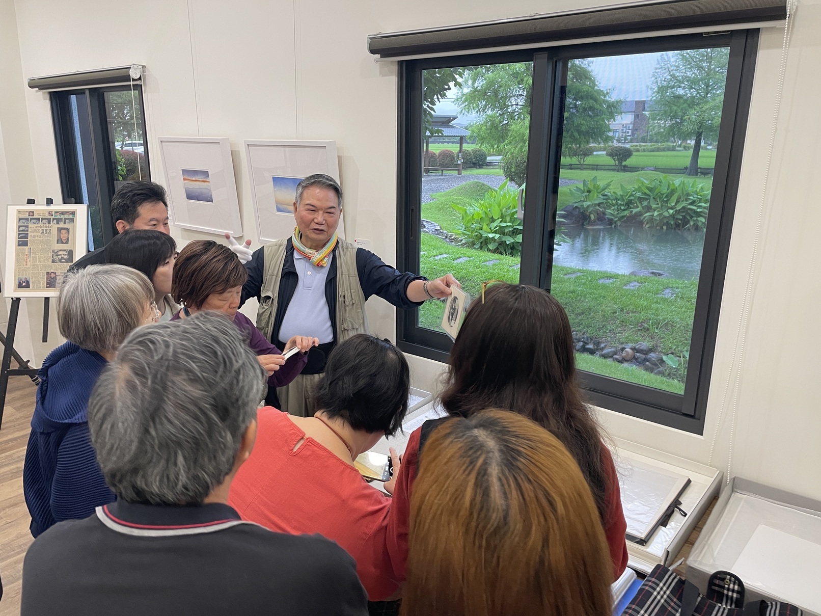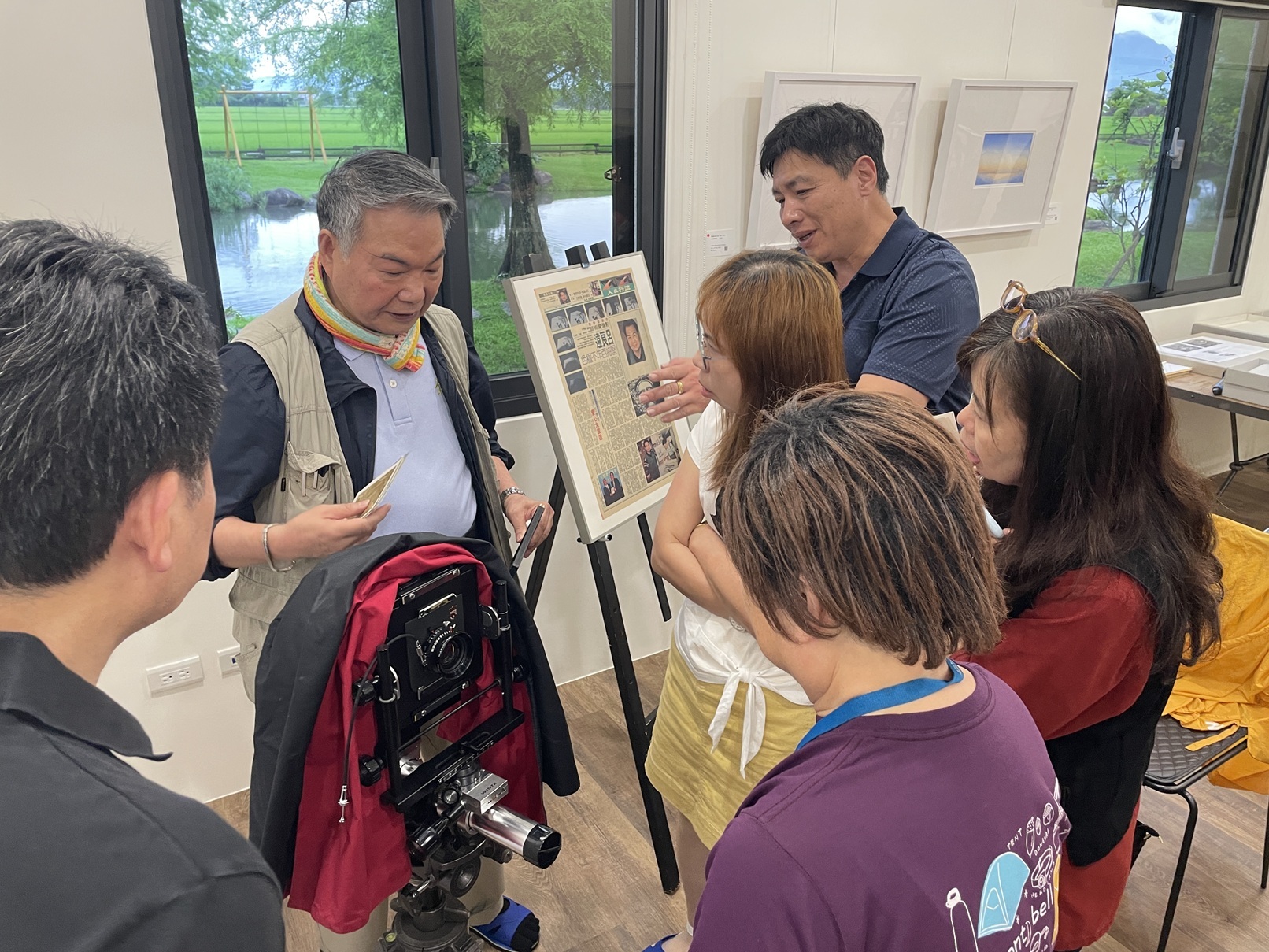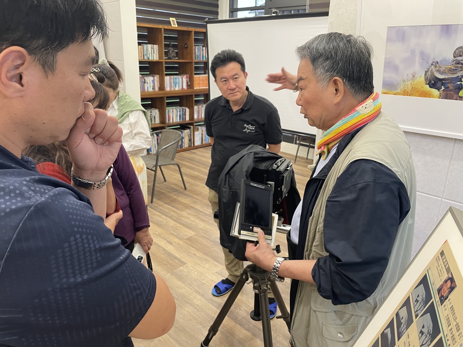 中場休息卻毫無「休息」的氣氛,老師親手致贈攝影卡片,學員熱情提問不斷,對一旁展示的各式攝影器材更是充滿好奇。