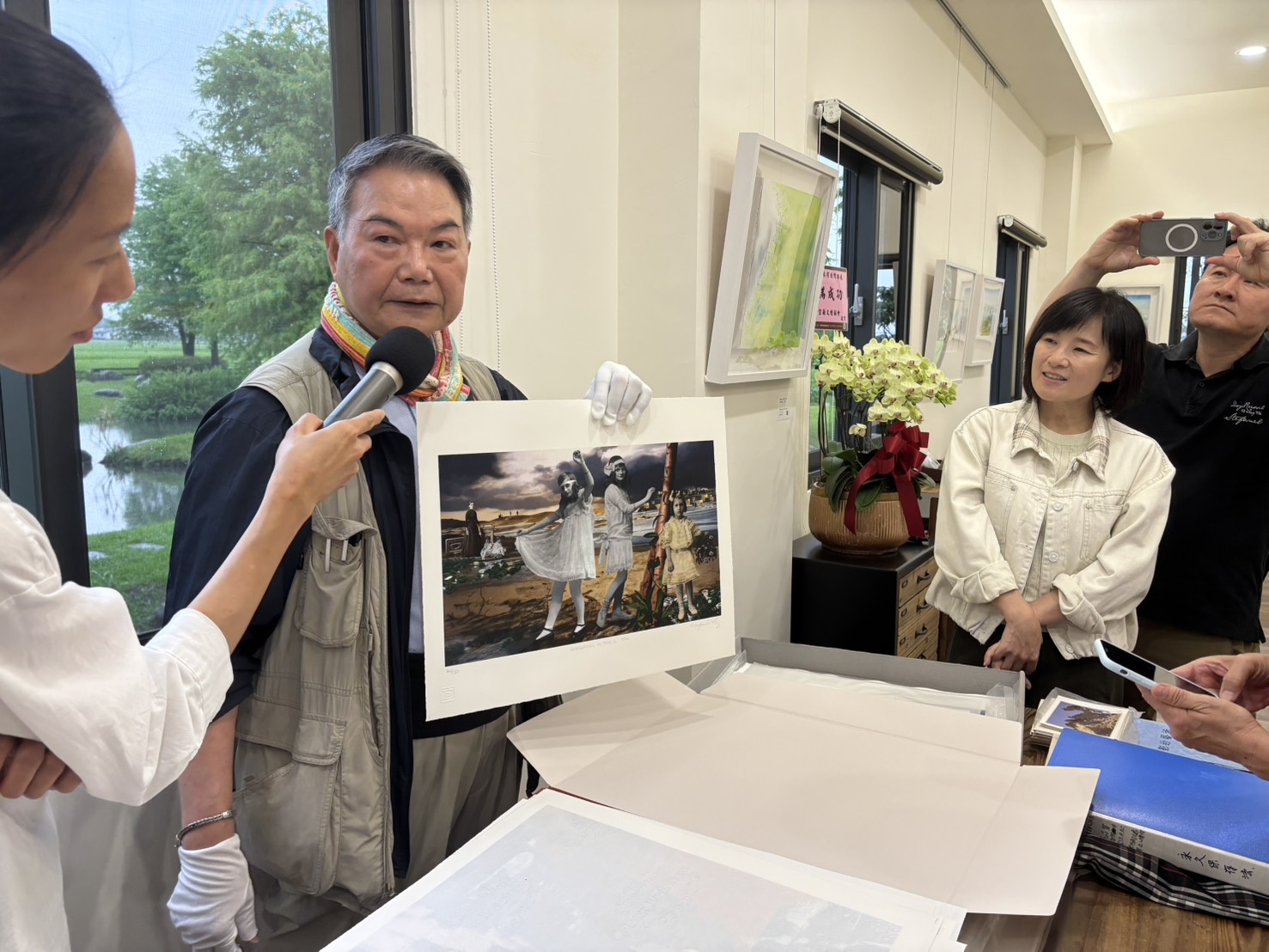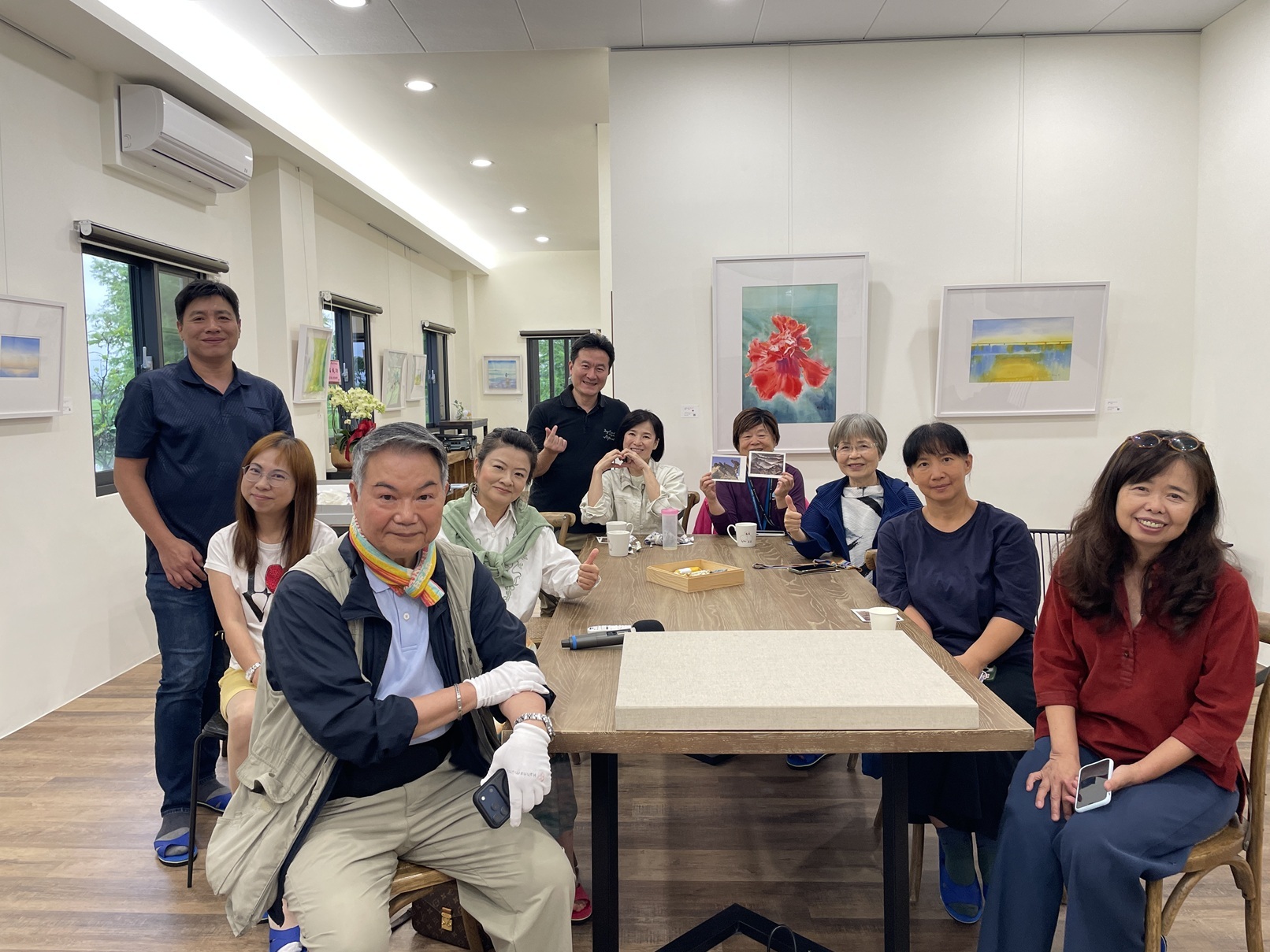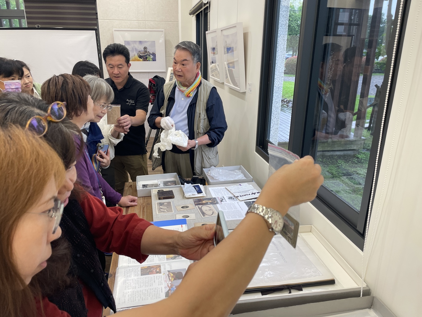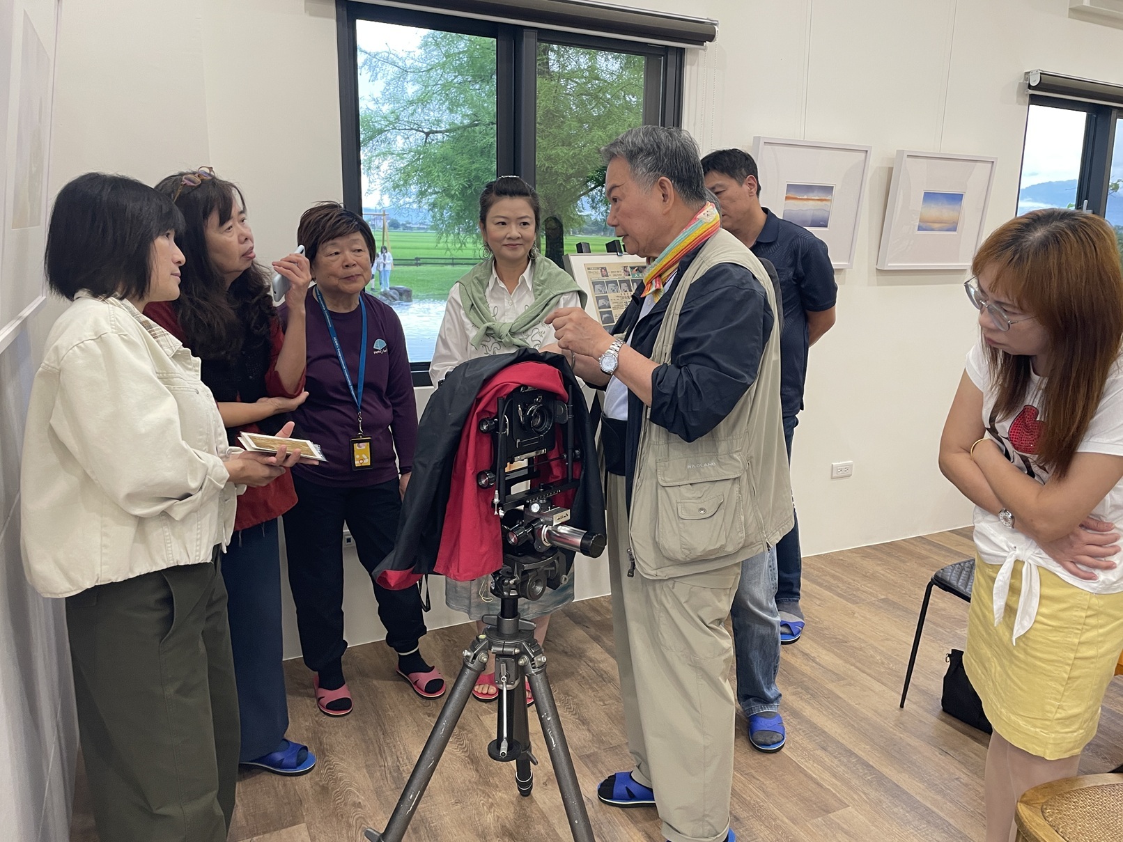 中場休息卻毫無「休息」的氣氛,老師親手致贈攝影卡片,學員熱情提問不斷,對一旁展示的各式攝影器材更是充滿好奇。