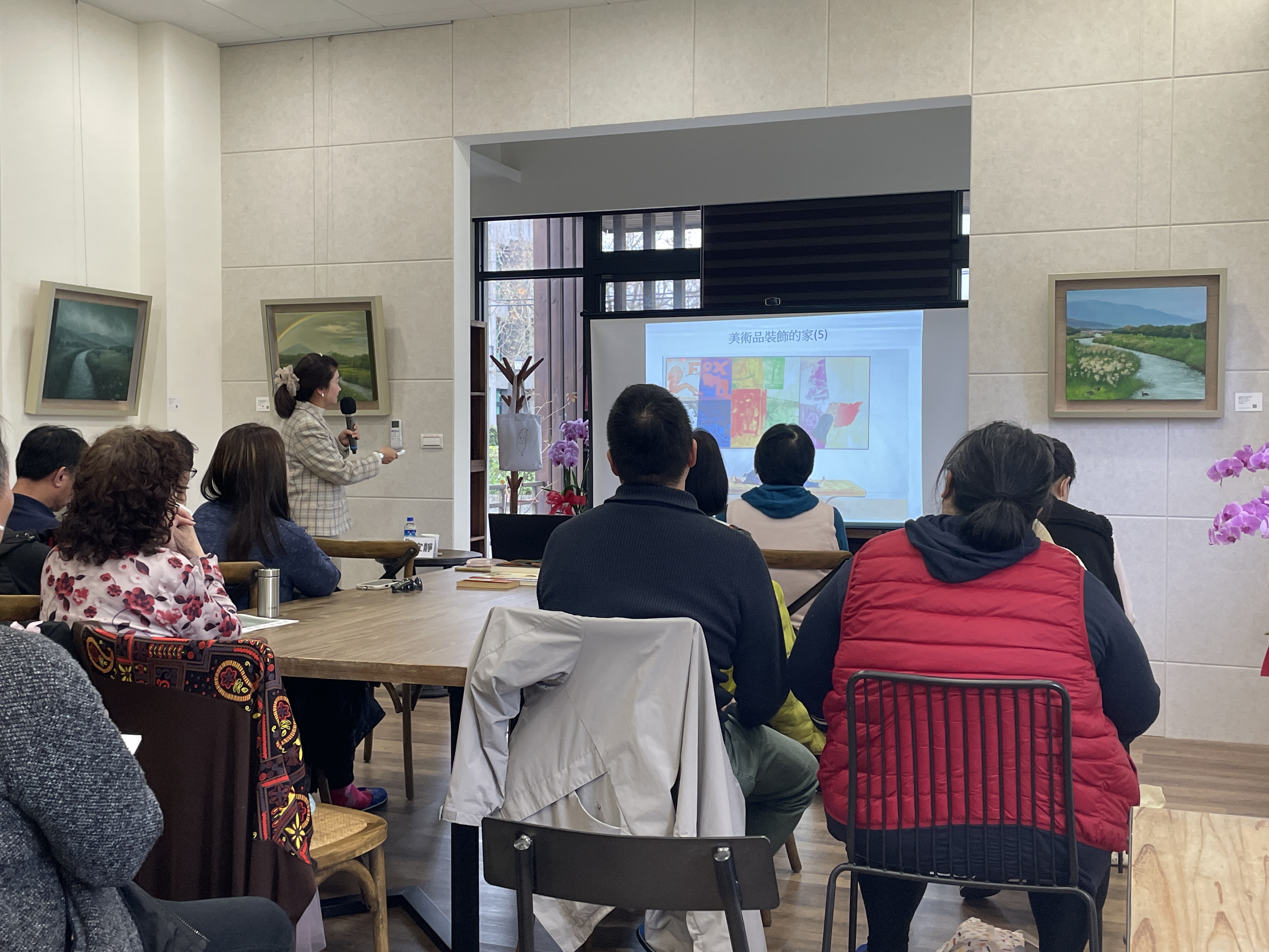 透過精彩的PPT分享與生動解說,現場彷彿化身為一座由台灣出發、連結世界的跨國美術館。學員們在林宜靜老師的引導下,認識作品如何被典藏於世界各大美術館與私人空間之中,欣賞經典與當代名作,同時也深入了解台灣極具特色的當代藝術家,感受本土創作多元而豐富的樣貌。