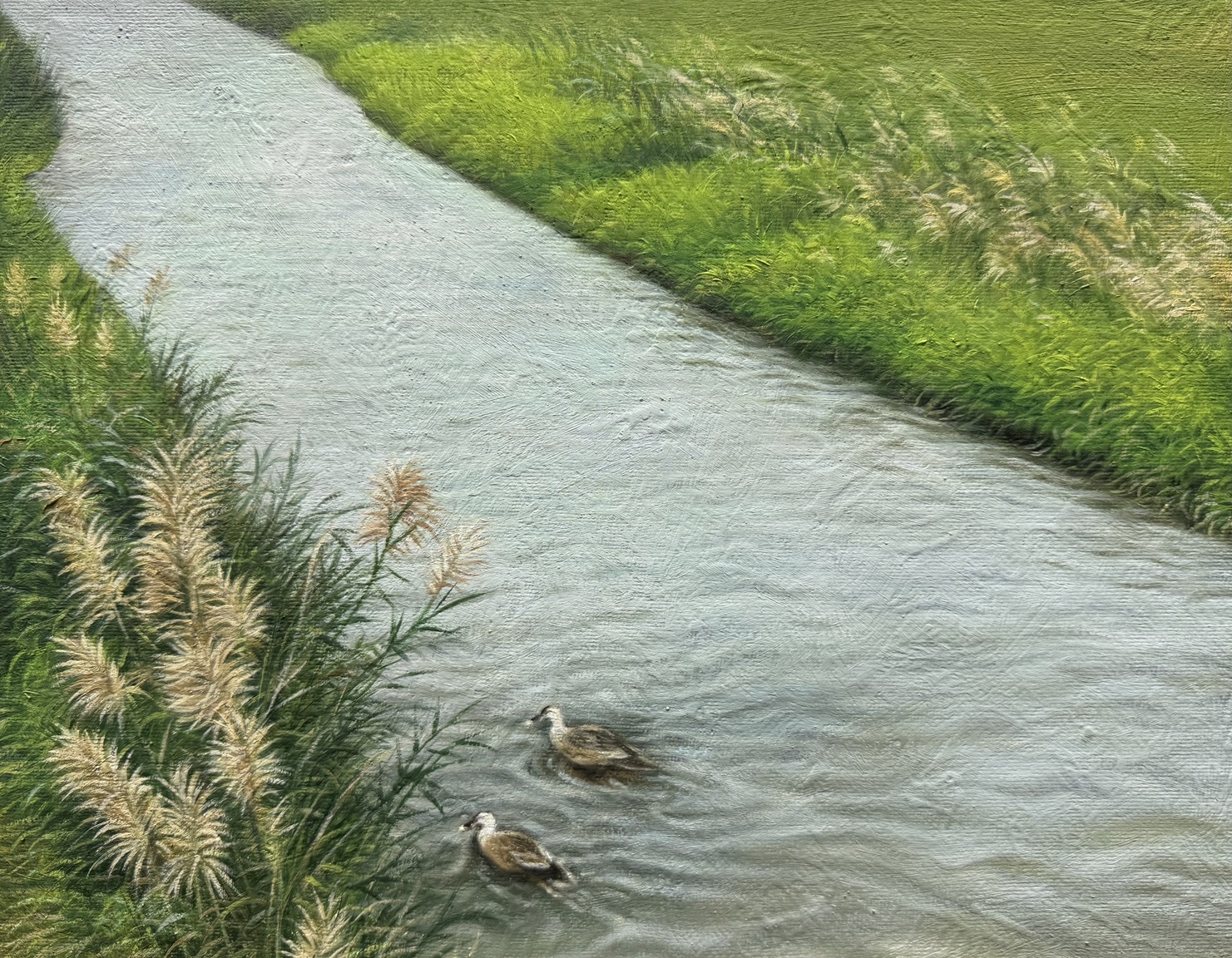 這幅作品不僅展現了安農溪的自然之美,更傳遞出一種心靈的輕盈。它提醒我們,生命的歌聲往往不在喧囂,而在水面上最細微的波動,在羽影最輕柔的舞動裡。