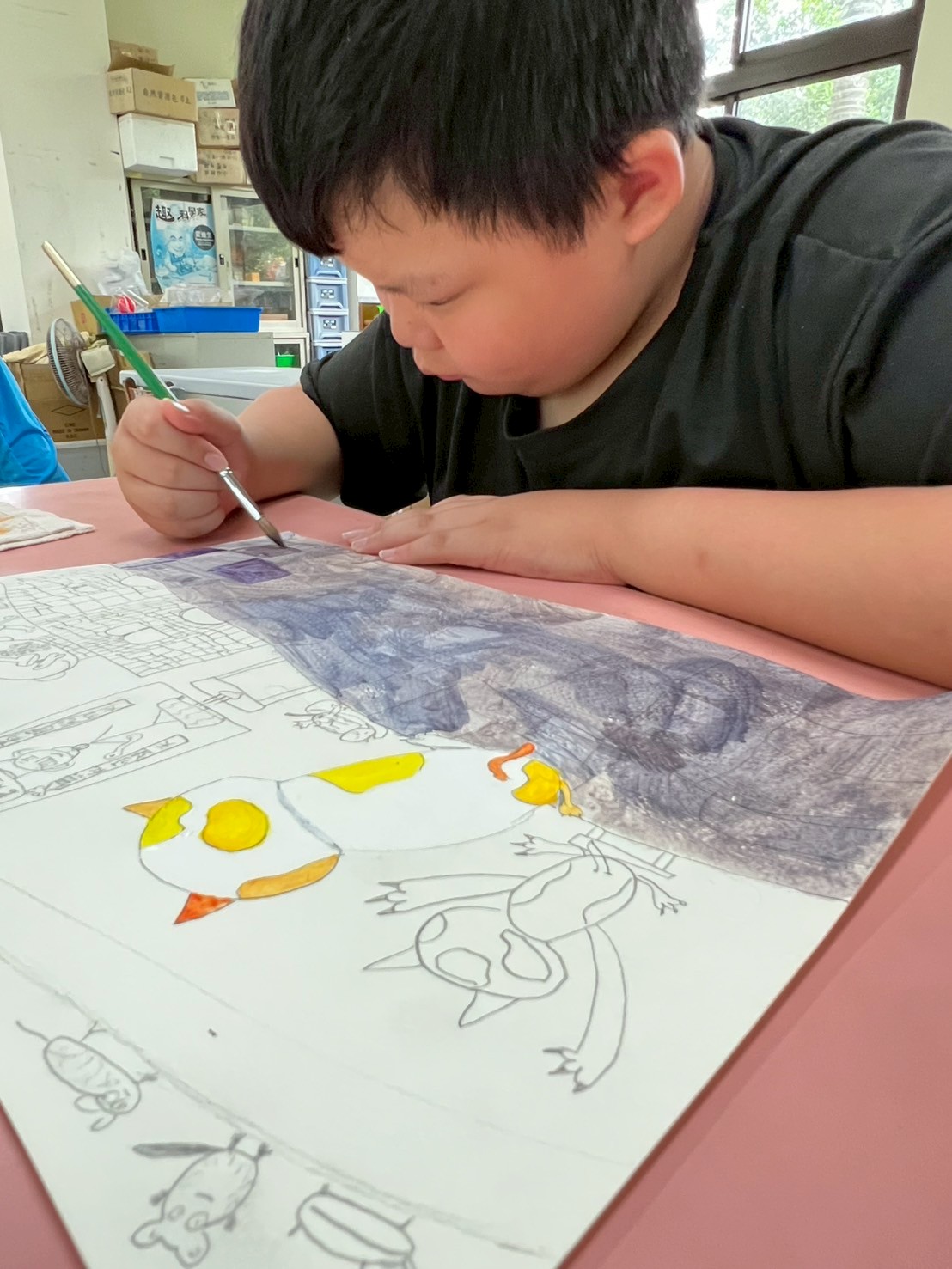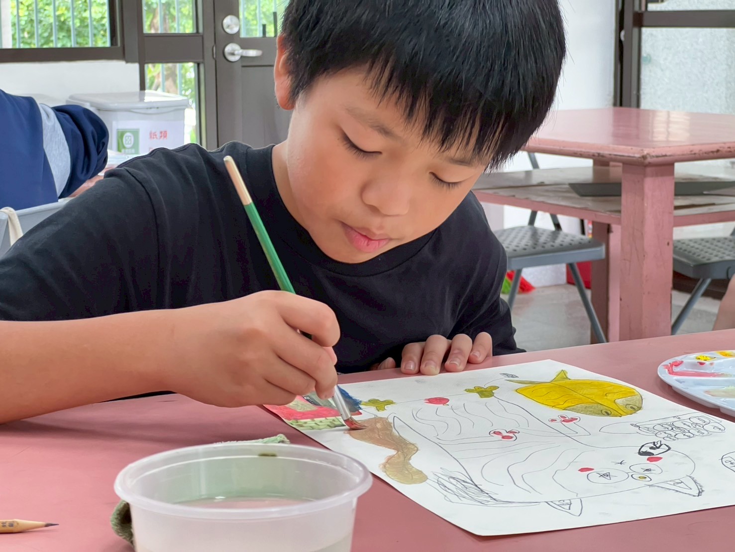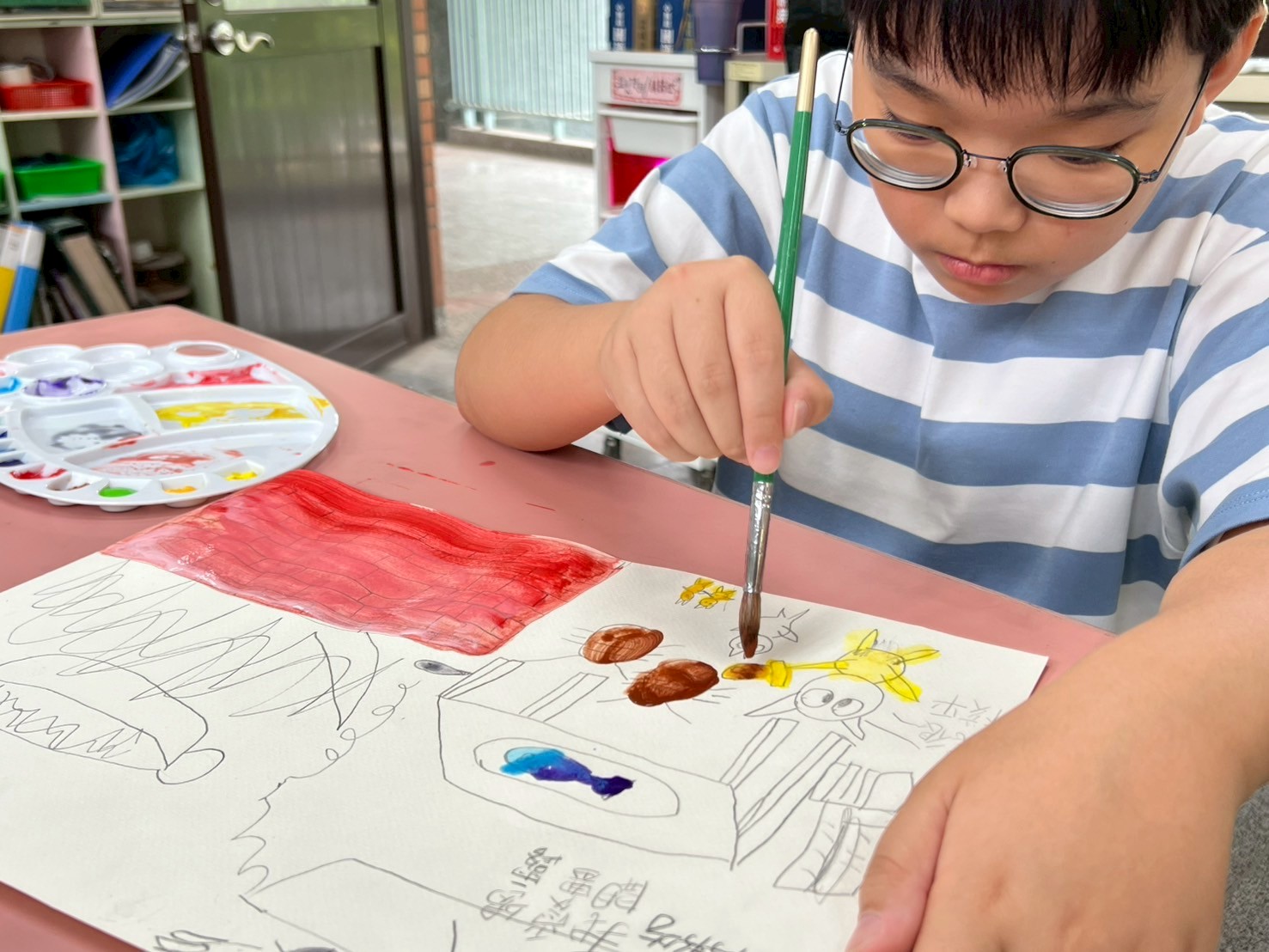 其它孩子都去操場玩了,還有兩位同學還捨不得放下畫筆繼續奮鬥!!👨🎨🧑🎨