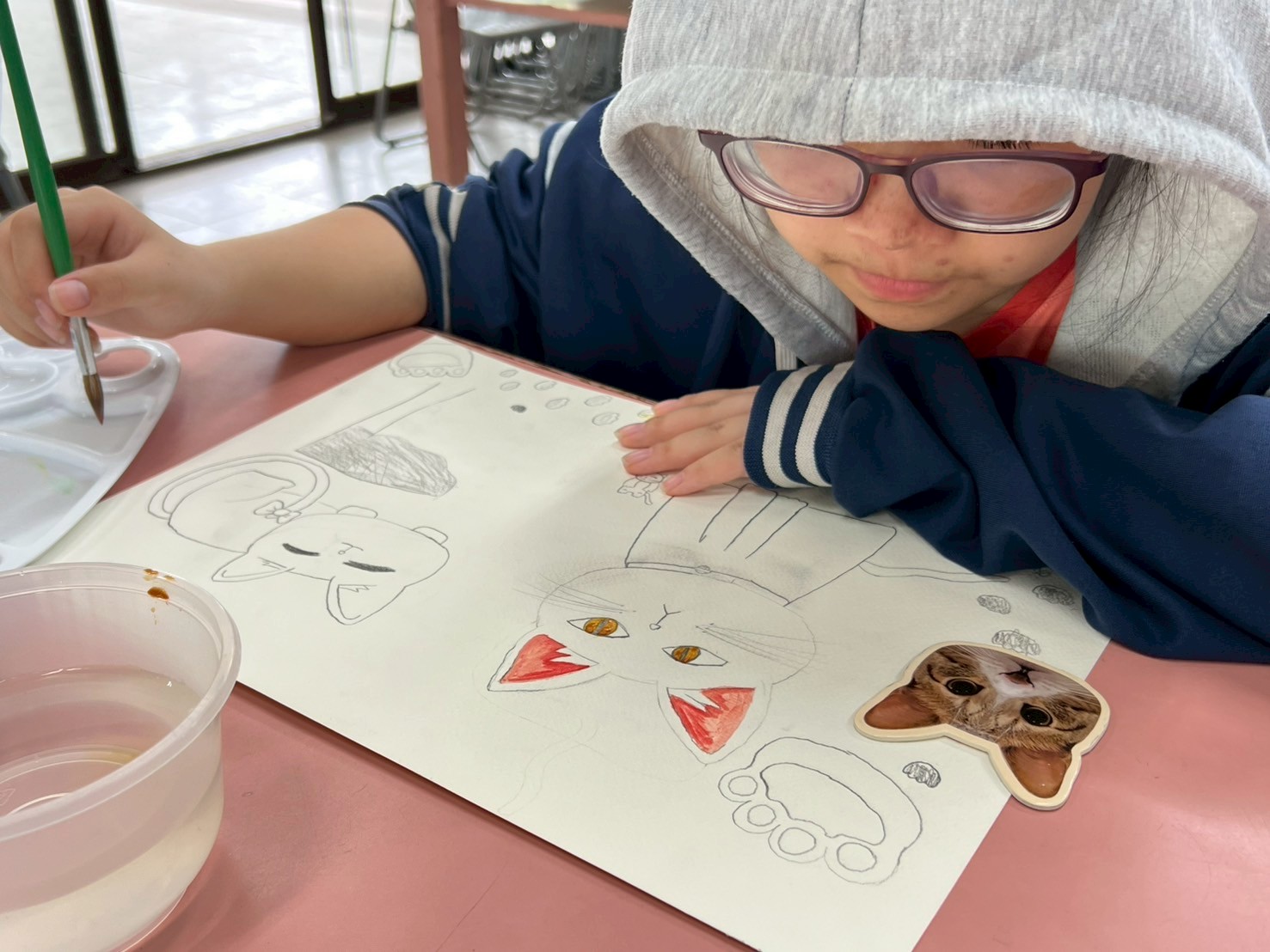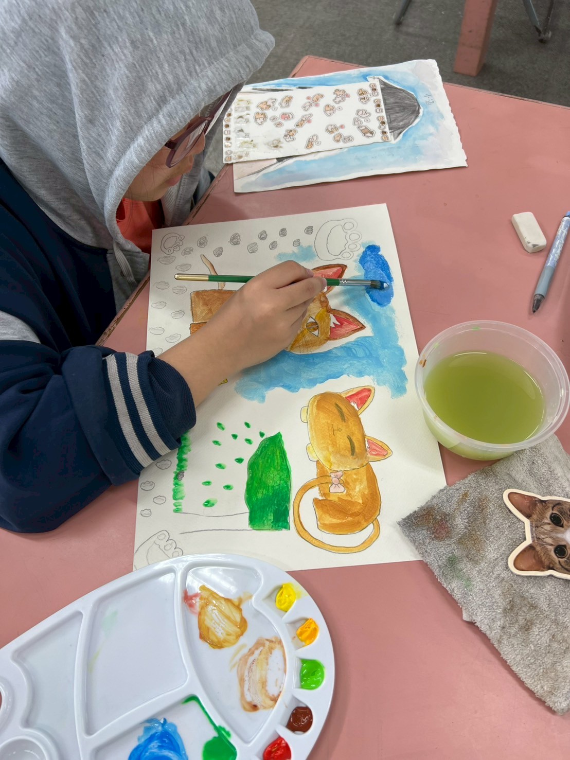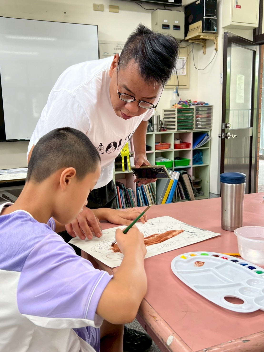 其它孩子都去操場玩了,還有兩位同學還捨不得放下畫筆繼續奮鬥!!👨🎨🧑🎨